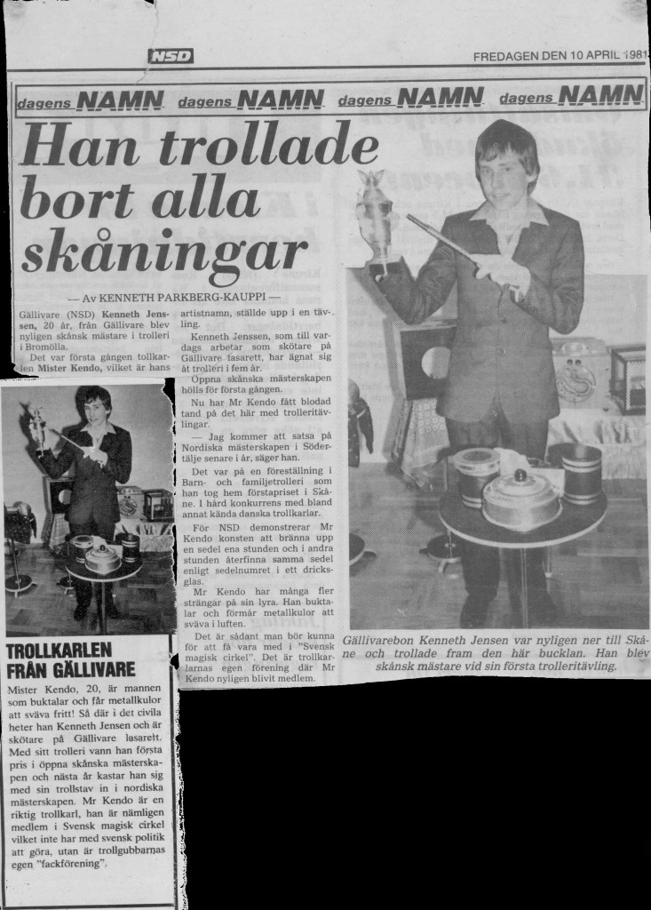 Mitt namn är Kenneth Jensen. Jag föddes 1961 i Gällivare. Mitt intresse för trolleri vaknade tidigt. Redan som 6-åring gjorde jag mina första föreställningar för mina nära och kära. Min morbror förstod att här var en blivande trollkarl och gav mig min första trollerilåda i julklapp.