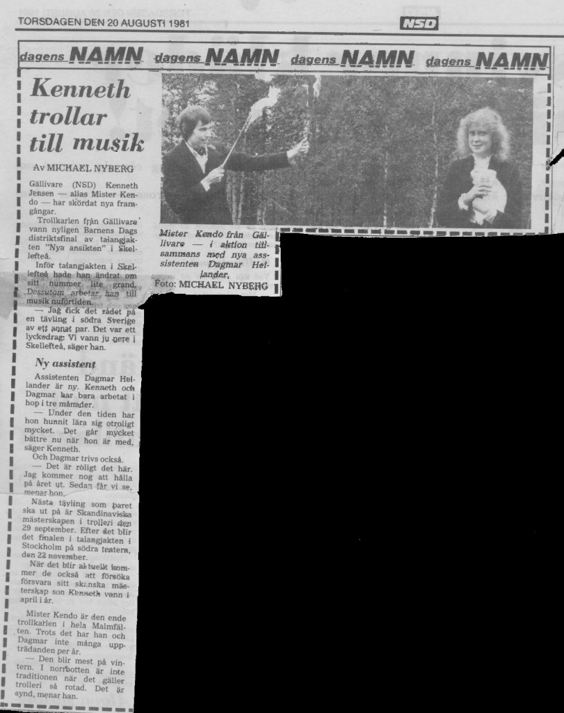 Den 30 juli 1979 är ett mycket viktigt datum. Det var nämligen då jag höll min första offentliga föreställning på en av Gällivare kommuns trivselkvällar. Det kom att bli början på ett äventyr som håller på än idag. Att stå på en scen är det absolut bästa jag vet. Jag har med framgång flera gånger tävlat i trolleri. Mer om det får du reda på i bildspelet nedan.